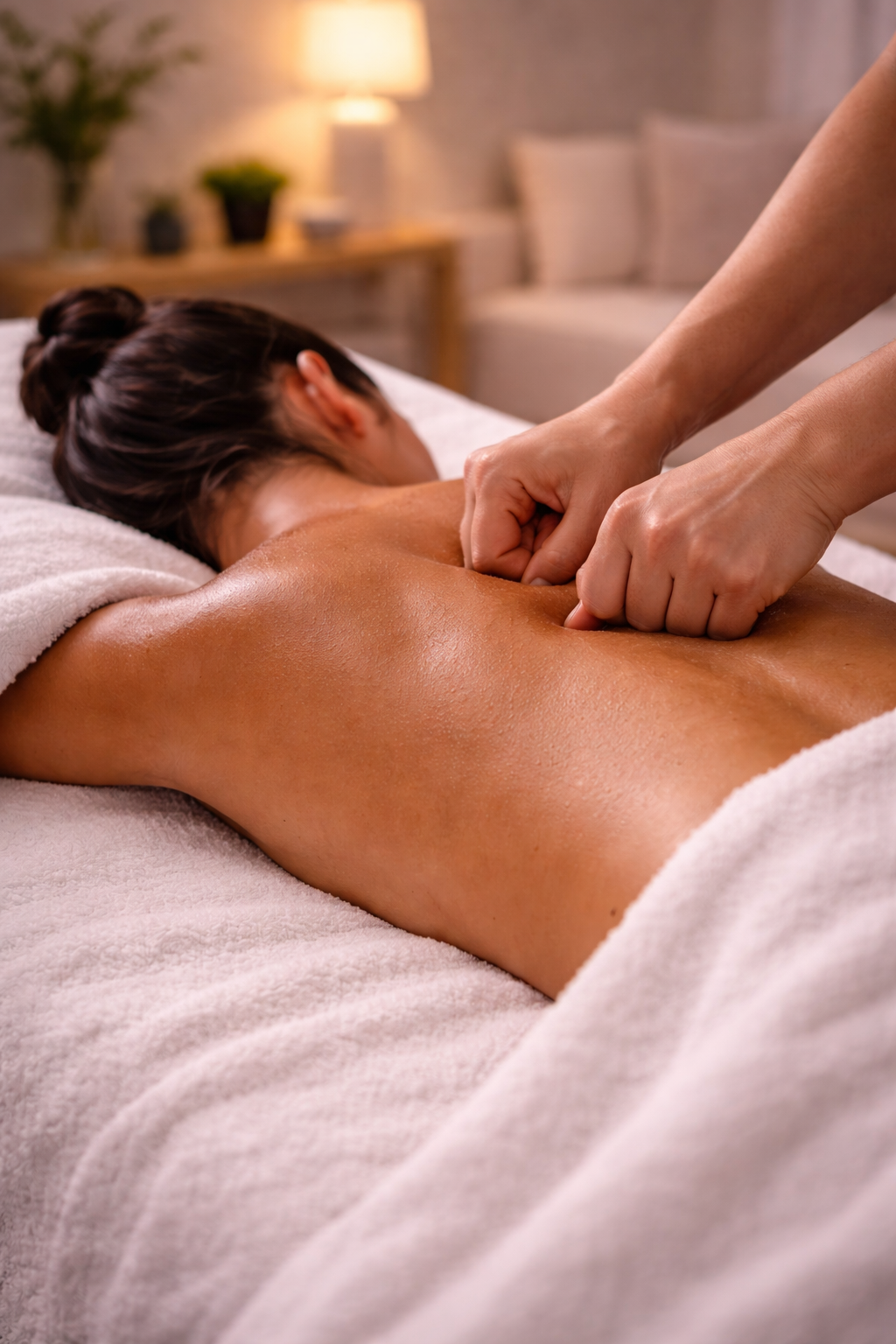 جلسة استرخاء علاجية مصممة لتخفيف التوتر والإجهاد الجسدي والذهني، تعتمد على حركات مدروسة وضغط متوسط يركز على مناطق التعب مثل الرقبة، الأكتاف، والظهر.