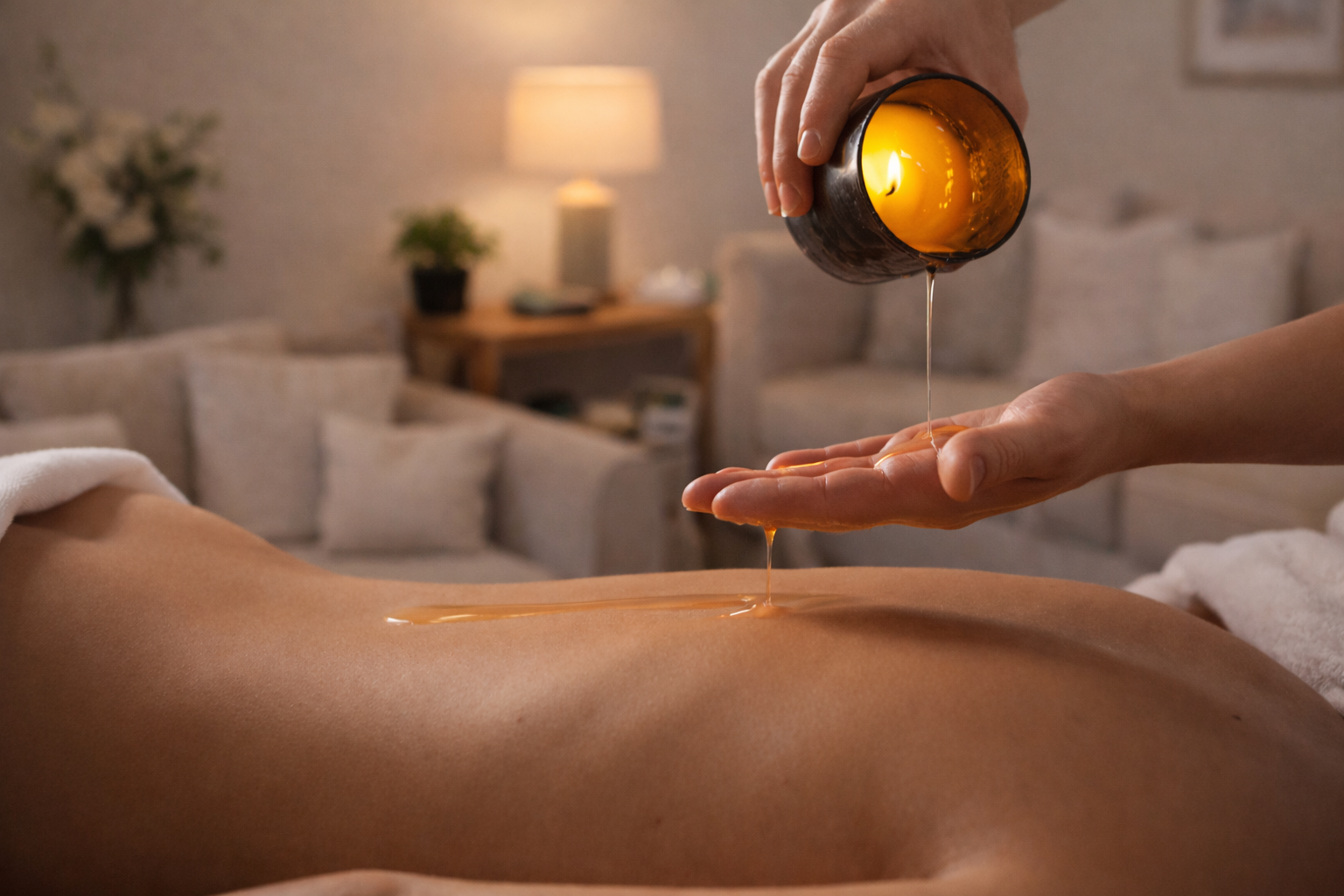 تجربة استرخاء فاخرة تجمع بين دفء الشموع الطبيعية ولمسات المساج الهادئة، حيث تتحول الشمعة إلى زيت دافئ مغذٍ ينساب على البشرة ليمنحك إحساسًا عميقًا بالراحة والسكينة.